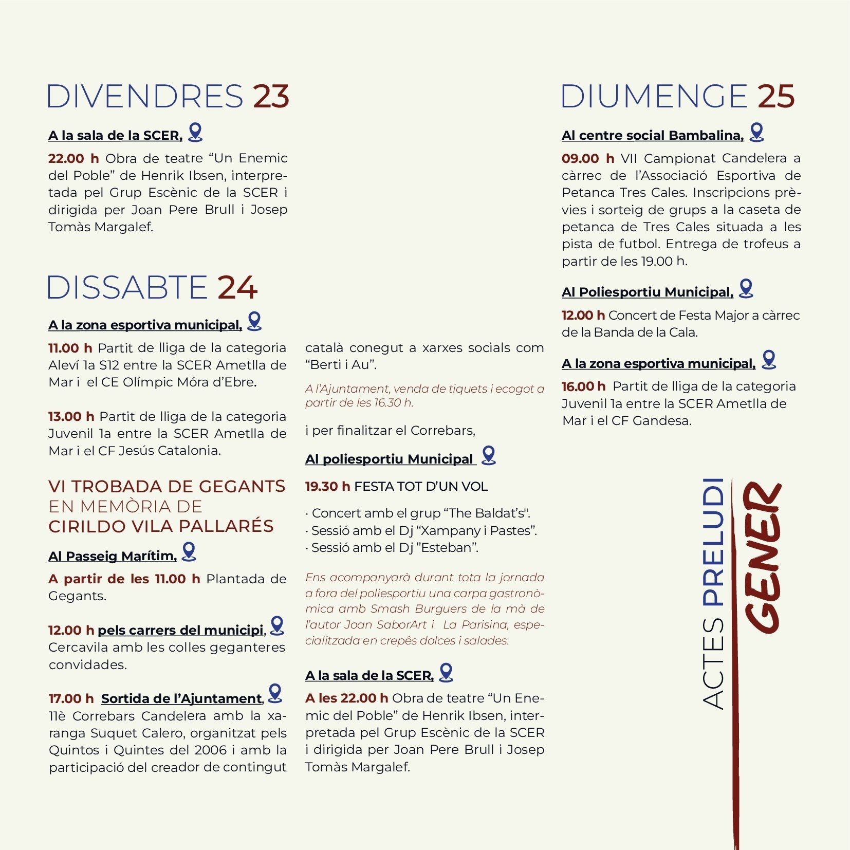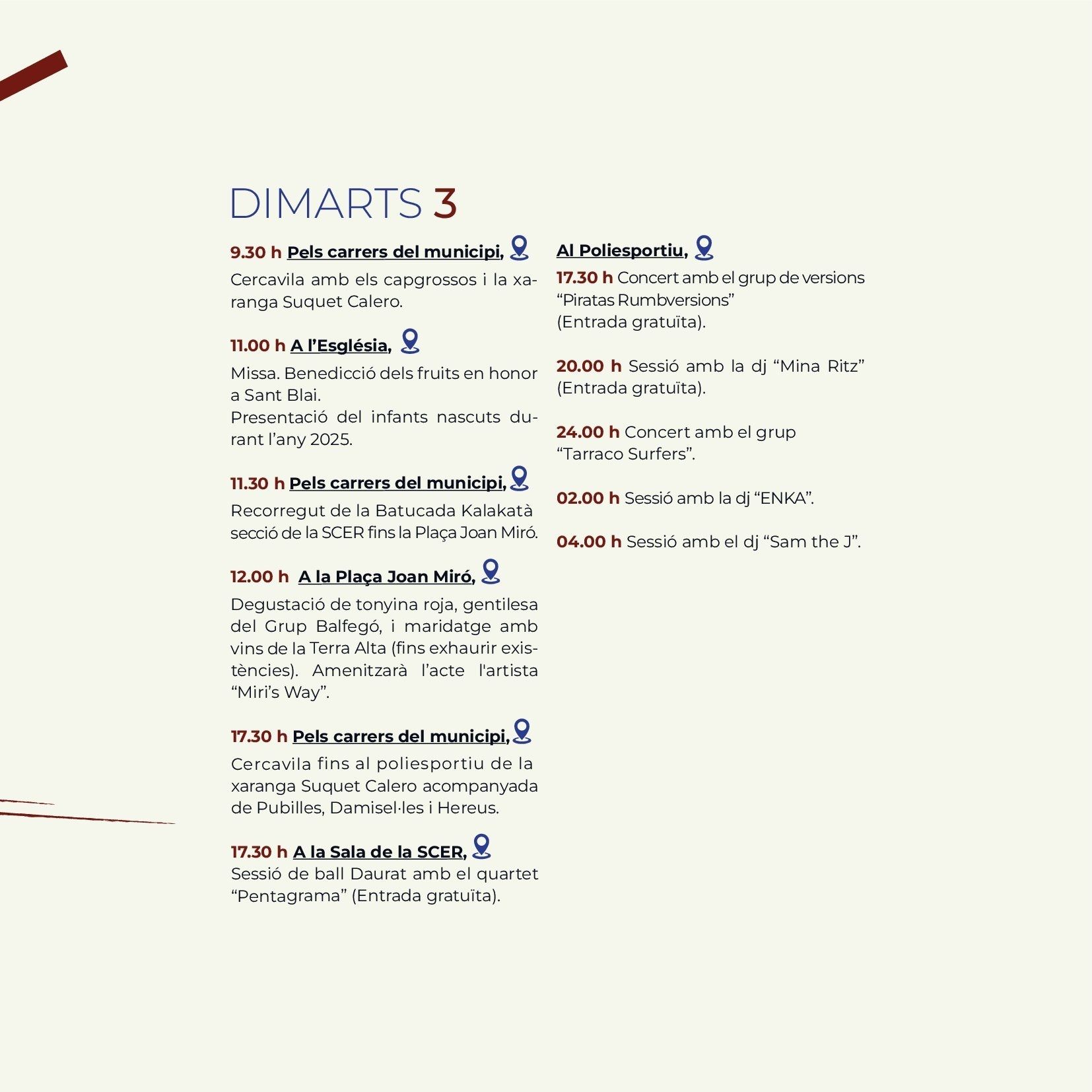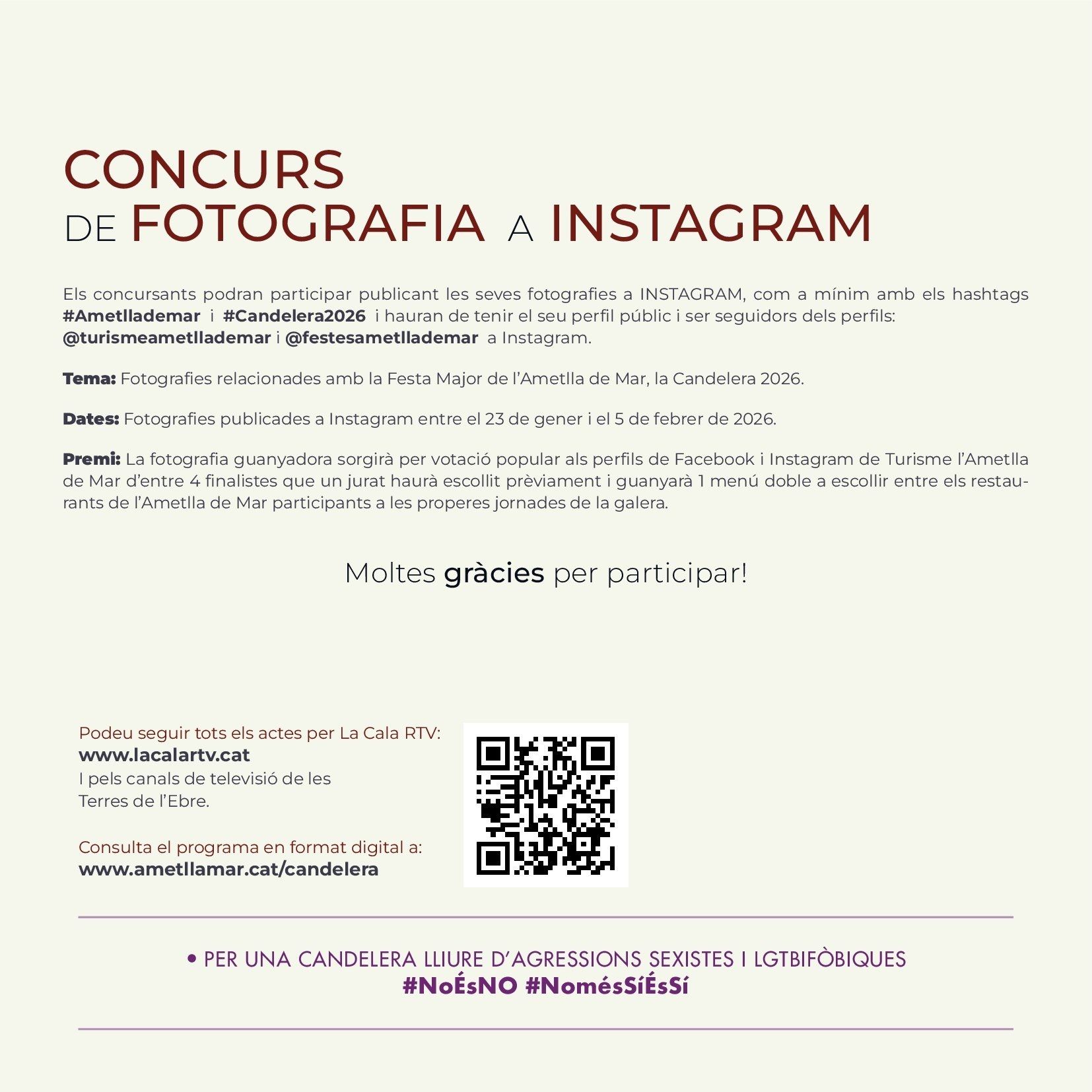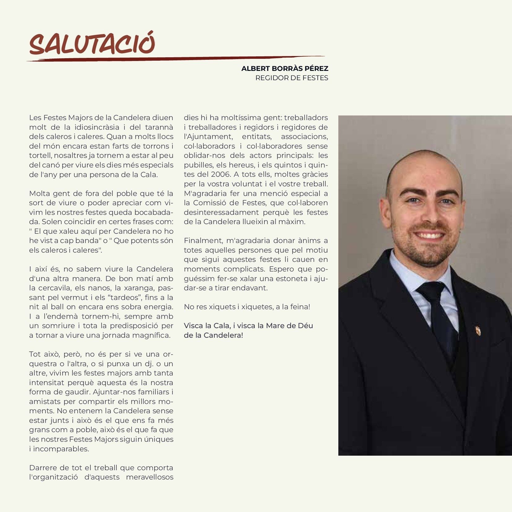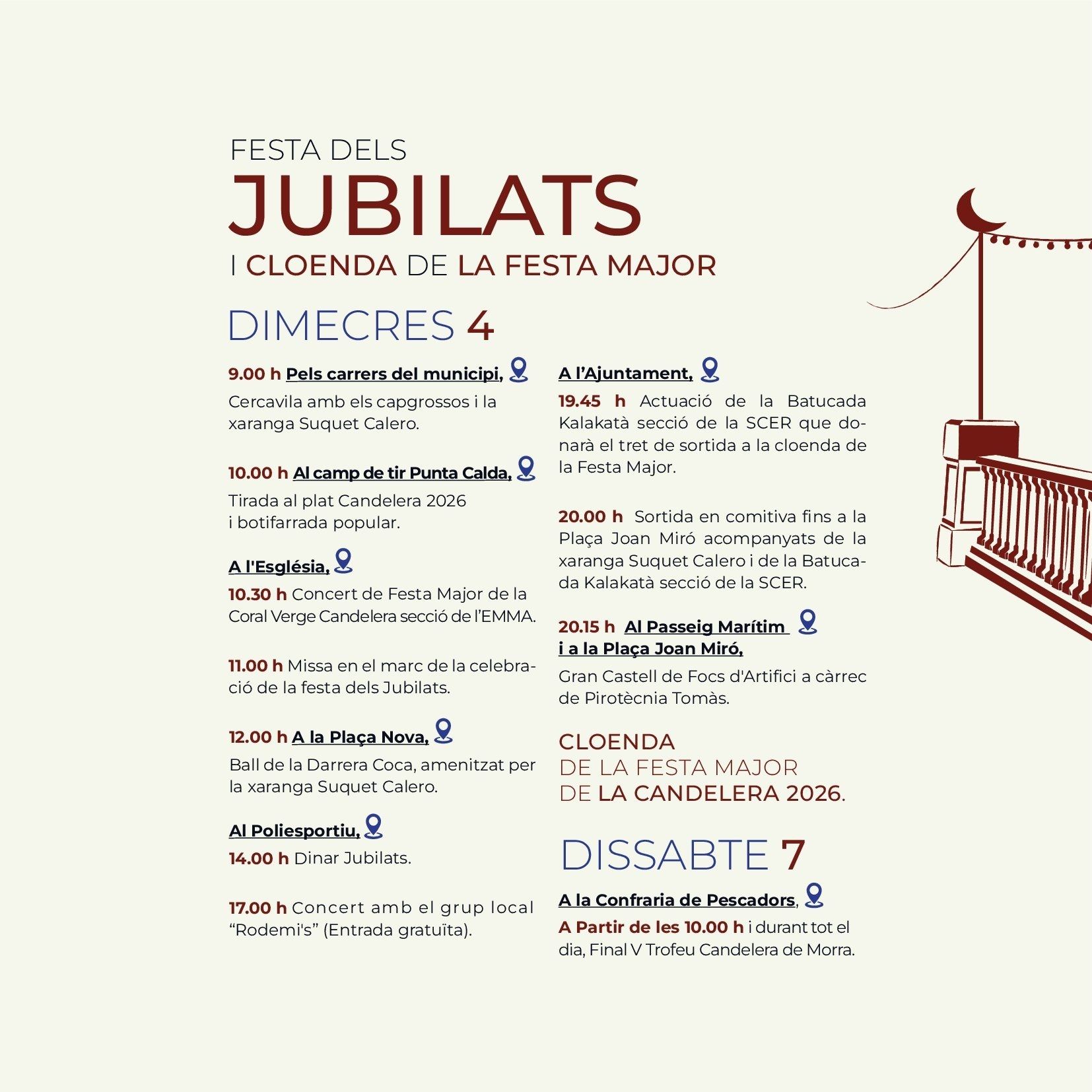 The Candelera, Carnivals Ametlla de Mar As elsewhere in Catalonia, Ametlla de Mar celebrates February 2nd, Festival of Candlemas, and as in all similar celebrations, the primary motivation is religious devotion to the patron saint, the Virgin of the Candlemas . Although today the religious sense of the party has been reduced, it’s true that Ametlla de Mar has a particular devotion to the patron, which gives meaning to the procession in his honour which is held the evening of February 2 where caleros pay homage through the main streets of the village with a candle (atxa) held in the hand. The solemnity of the procession, which peaks when it arrives at the port, is traditionally marked by the presence of many curious visitors and people from nearby counties and other parts of Catalonia. Traditions evolve but the meaning is the same. This same has happened with the young men and women responsible for carrying Candelera during the procession. Until the 80s, the responsibility was limited to young men who had completed military service during the year. Currently its is divided between the "quintos", boys and girls who during the year turned 20, and that apart from carrying the Mary they become, along with the "heiresses", the stars of the fiesta. But the tradition of The Candelera is not limited to the religious sentiment, but unfolds in any of the areas of the Calera society, with cuisine being one of the most important parts, with native sweets, the "pastissets" and the "corassons" an accompaniment to any well prepared table. Popular culture is represented throughout the celebrations with music from brass bands and the esteemed presence of Nanos, which are popular imaginary characters brought to life. Giants rome the streets such as Sant George and the Dragon, along with Pere and La Candelera, a couple of giants with the name of the local patron saints, leading the parade, although most popular part is the floral offering to the patron, also on February 2nd. Women's Day, where the women rule the village, and the day of the senior people (older people), in which retirees share a fellowship meal, are other traditions that have been introduced in the last 30 years and have become firmly established among the "caleros and caleras." Music festivals, public drinks parties, sports activities and exhibitions come together during the festival in which the afternoons come alive with one the oldest traditions, dancing in the square and the raffle for the last